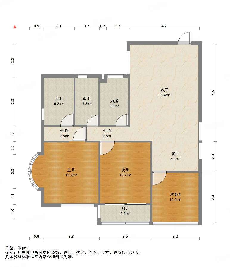 厅室3室2厅2卫2阳台