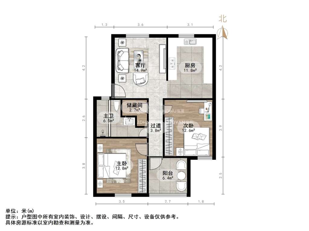 朝向南 建筑面积59.42㎡