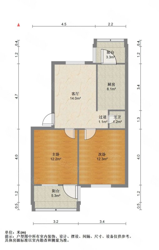 【户型】:两室一厅一卫,南北卧室,户型方正合理。