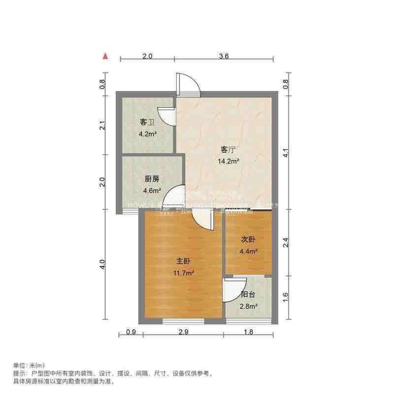 朝向南北 建筑面积58㎡