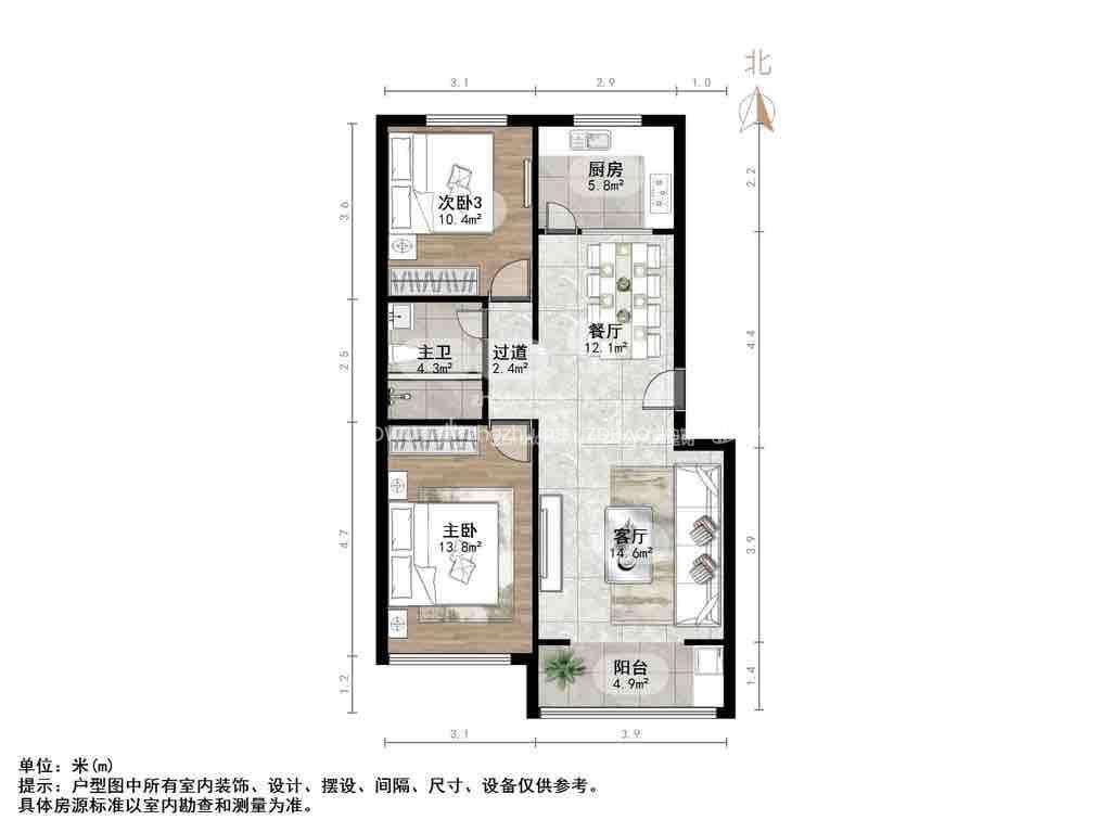 朝向南北 建筑面积95.5㎡