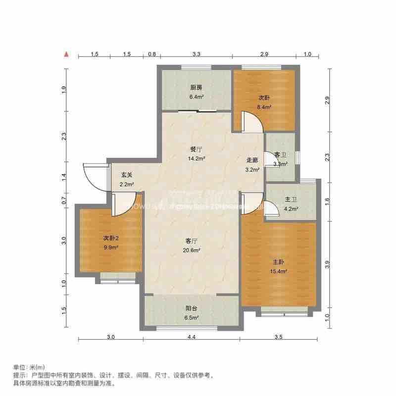 厅室3室2厅2卫1阳台