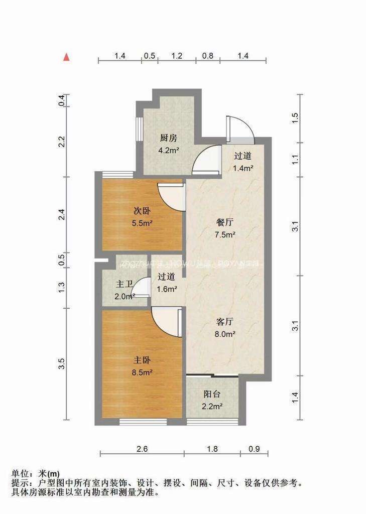厅室2室1厅1卫1阳台