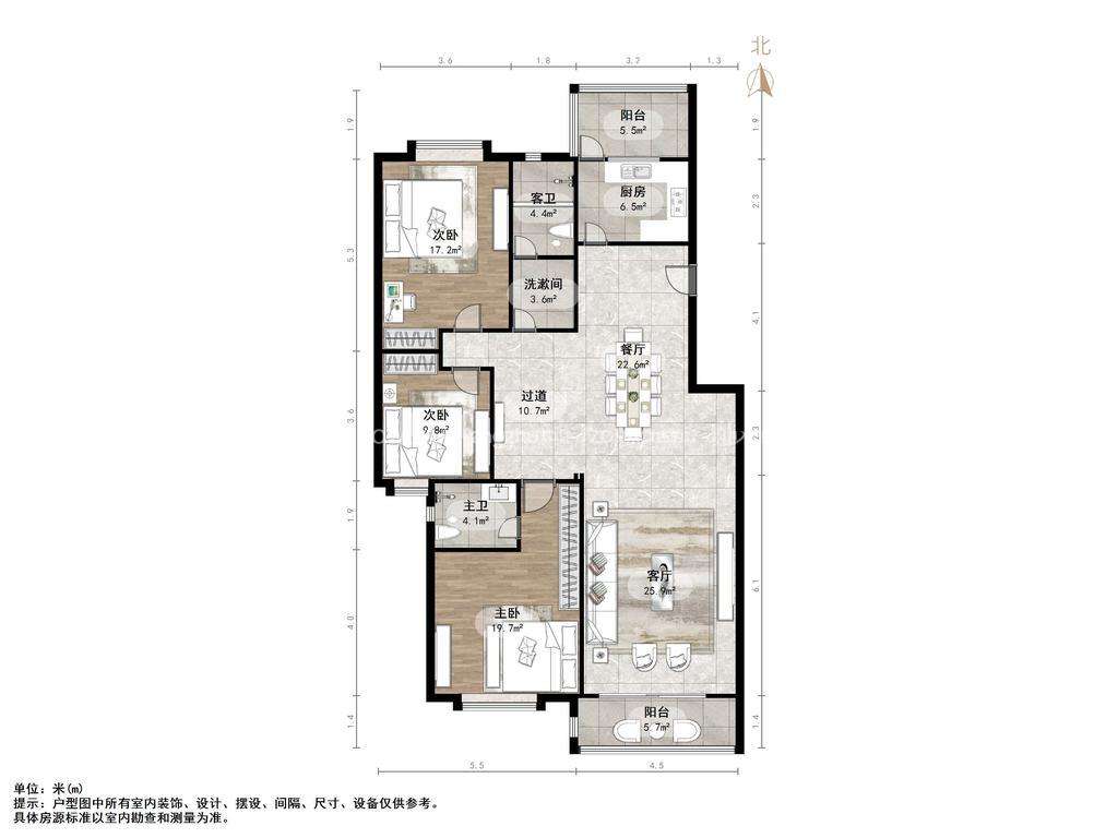 厅室3室2厅2卫2阳台