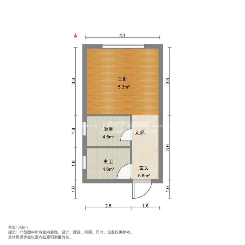 1室1厅1卫,45平米