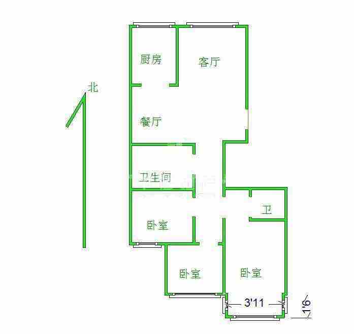 2、户型优势:3室2厅,南北卧室,客厅方正好用,单元对讲门,大院传达,安全性高!