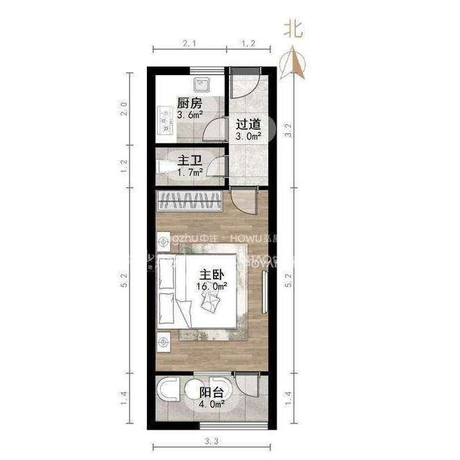 朝向南北 建筑面积35㎡