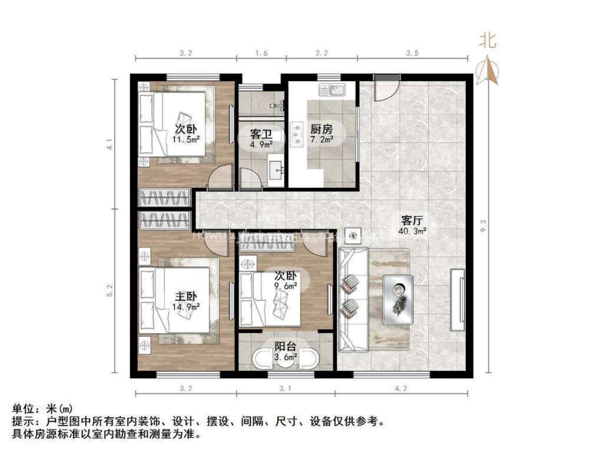 朝向南北 建筑面积98㎡