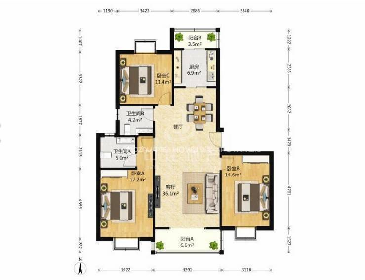 厅室3室2厅2卫2阳台