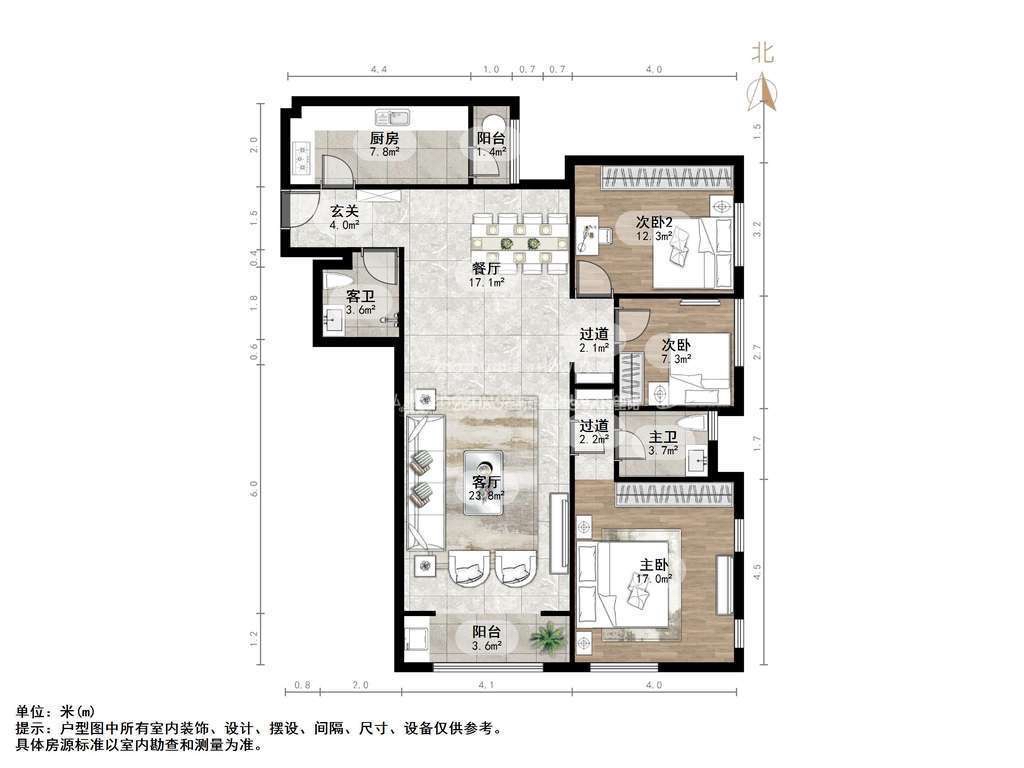 厅室3室2厅2卫0阳台