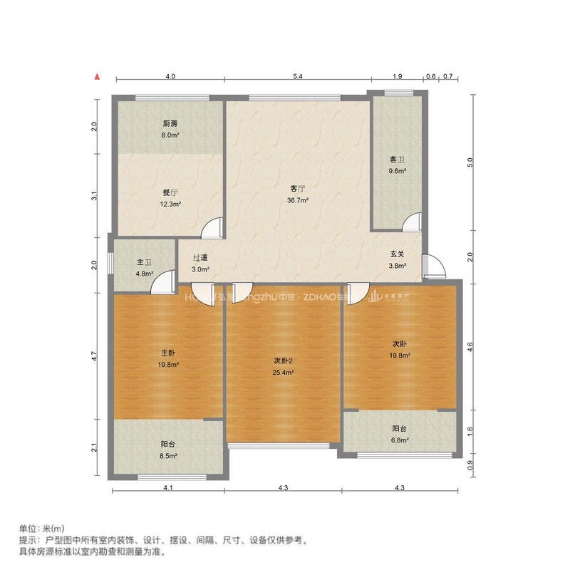 厅室3室2厅2卫1阳台