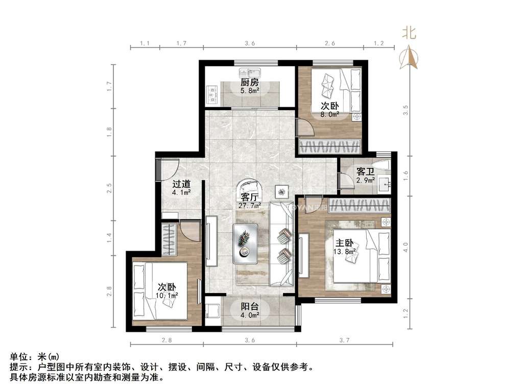 朝向南北 建筑面积105㎡