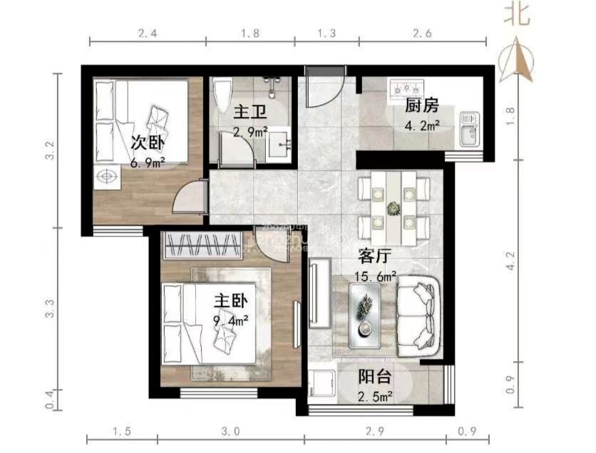 厅室2室1厅1卫1阳台