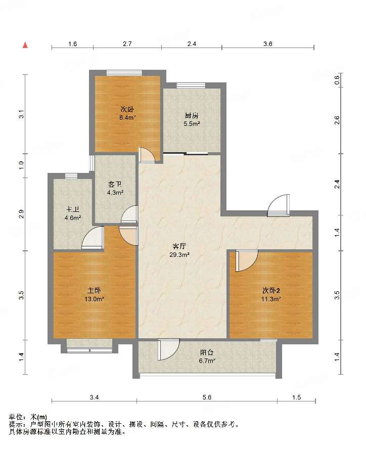 厅室3室2厅2卫2阳台