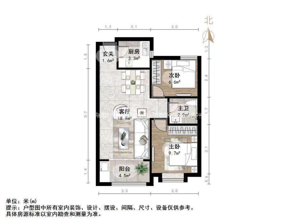 朝向南北 建筑面积72.45㎡