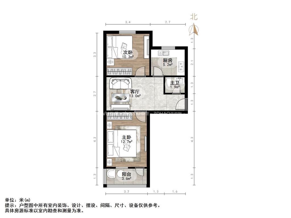 厅室2室1厅1卫2阳台