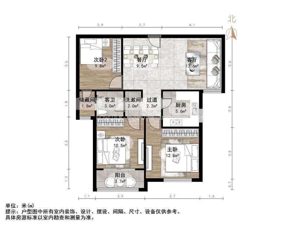 朝向南北 建筑面积97㎡