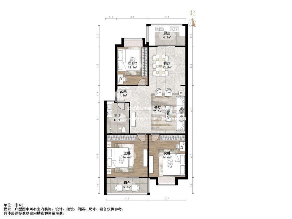 厅室3室2厅1卫1阳台