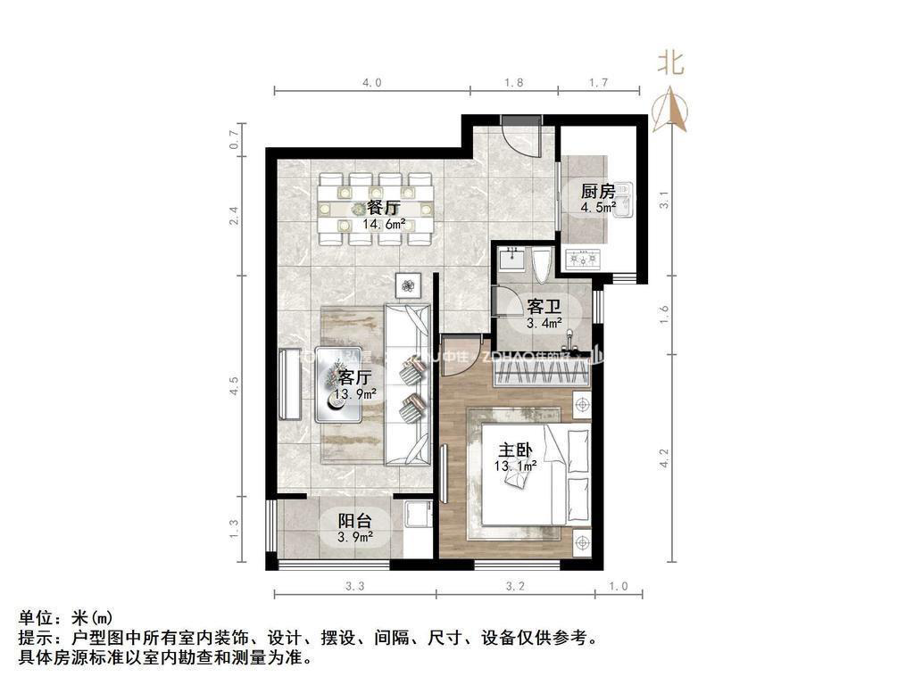 朝向南 建筑面积70㎡