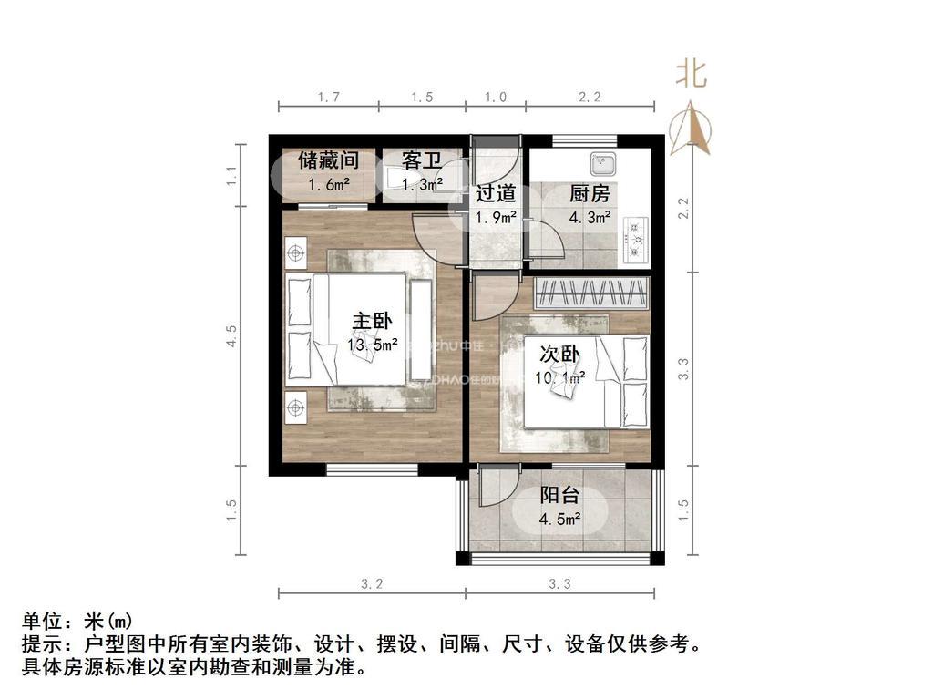 朝向南北 建筑面积43.36㎡