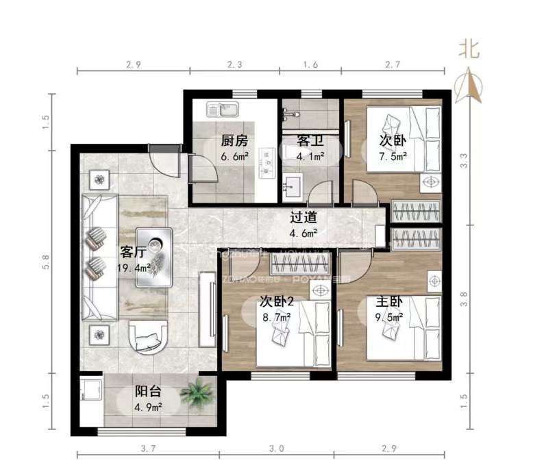 朝向南 建筑面积93㎡