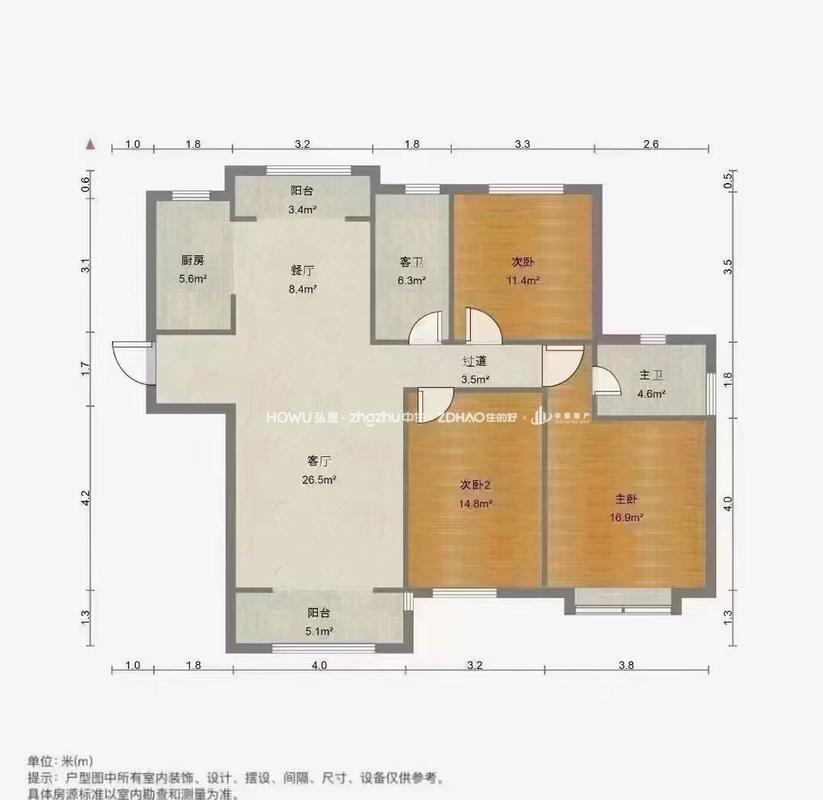 厅室3室2厅2卫2阳台