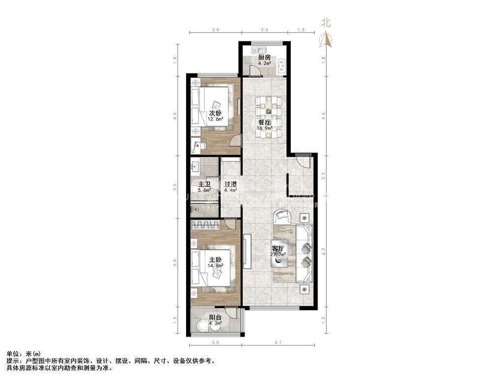 朝向南北 建筑面积108.6㎡