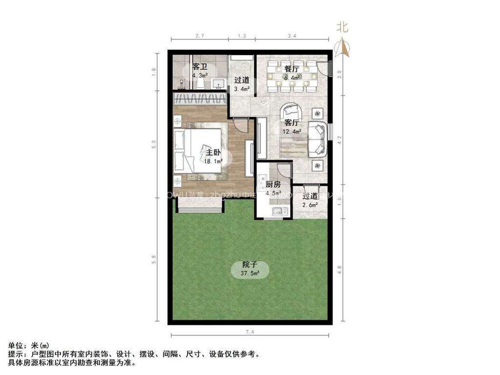 朝向南北 建筑面积70.29㎡