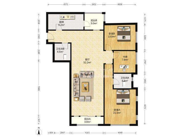 厅室3室2厅2卫0阳台