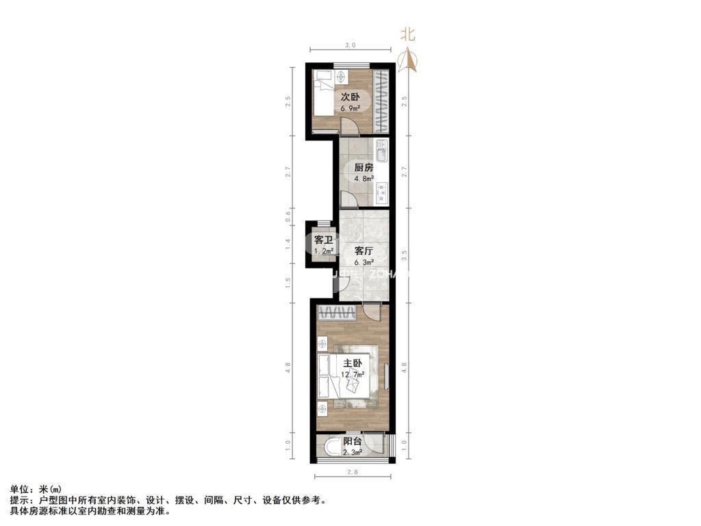 朝向南北 建筑面积49.6㎡