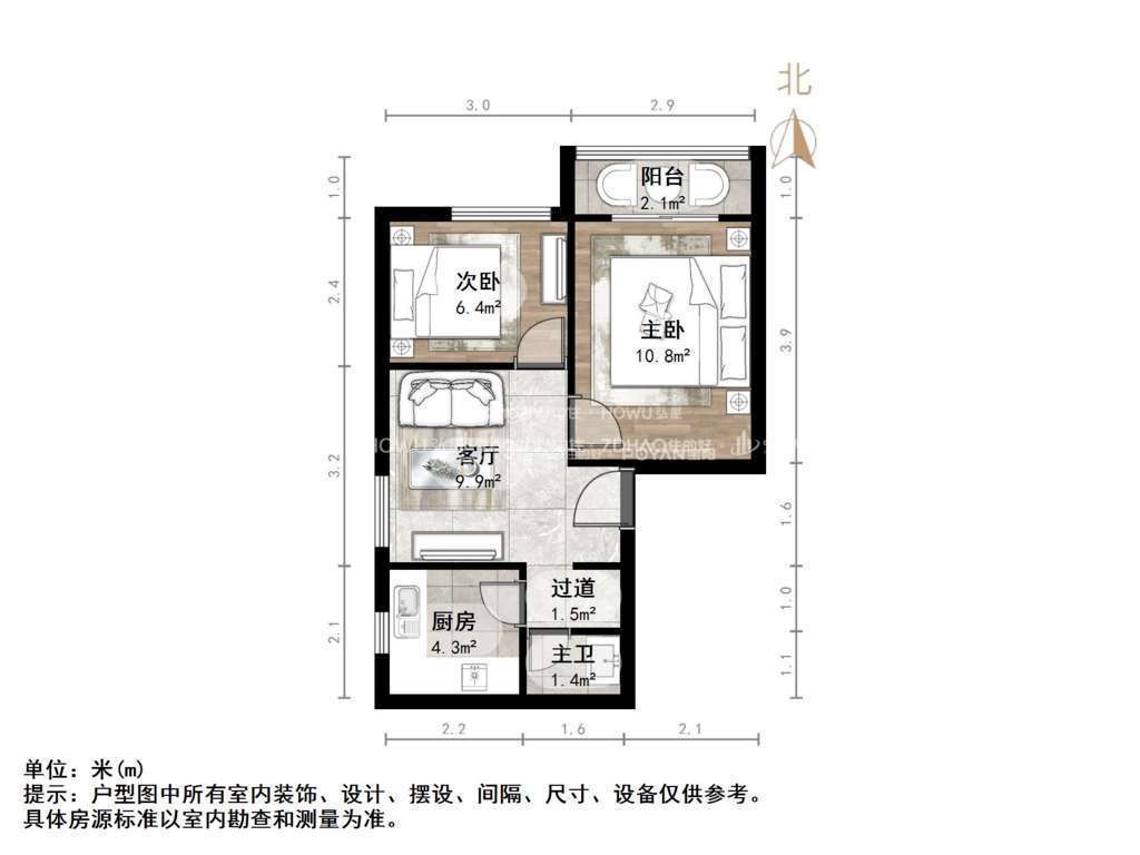 厅室2室1厅1卫1阳台