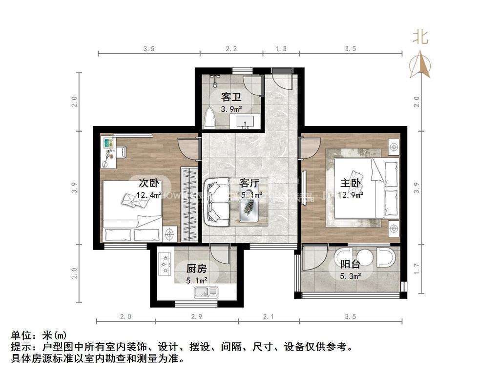 厅室2室1厅1卫1阳台