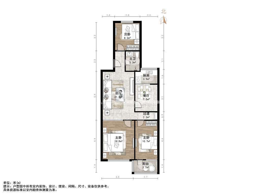 厅室3室2厅1卫1阳台