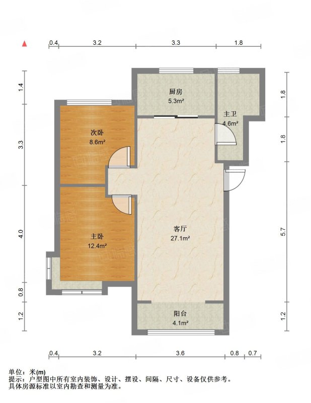 厅室3室2厅2卫1阳台