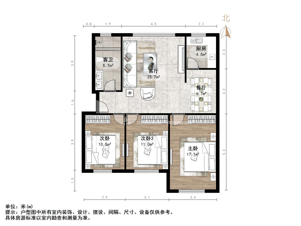 朝向南北 建筑面积103㎡