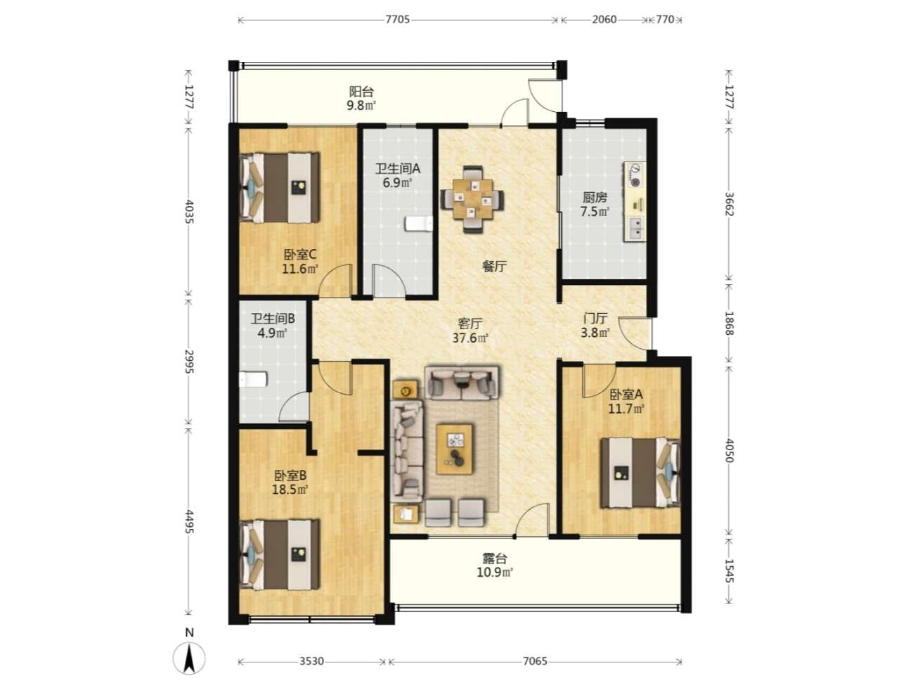厅室3室2厅2卫2阳台