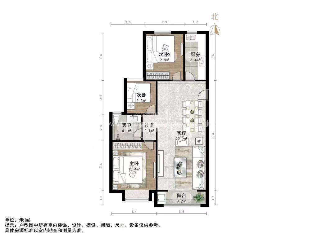 朝向南 建筑面积112㎡