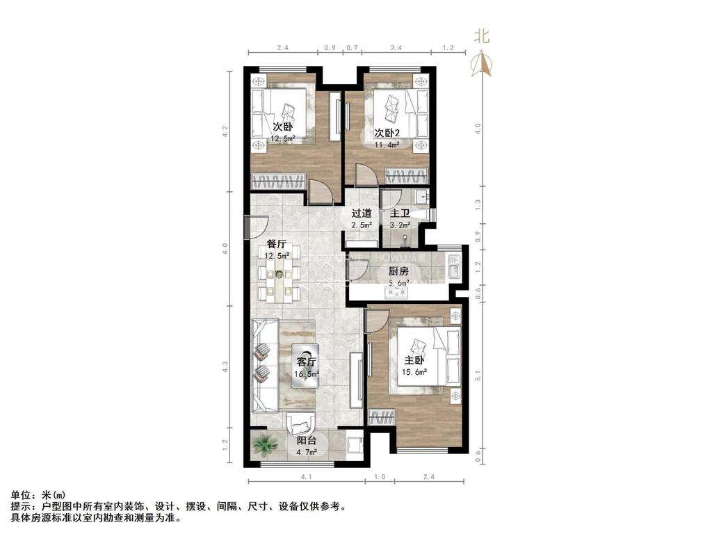 朝向南北 建筑面积124㎡