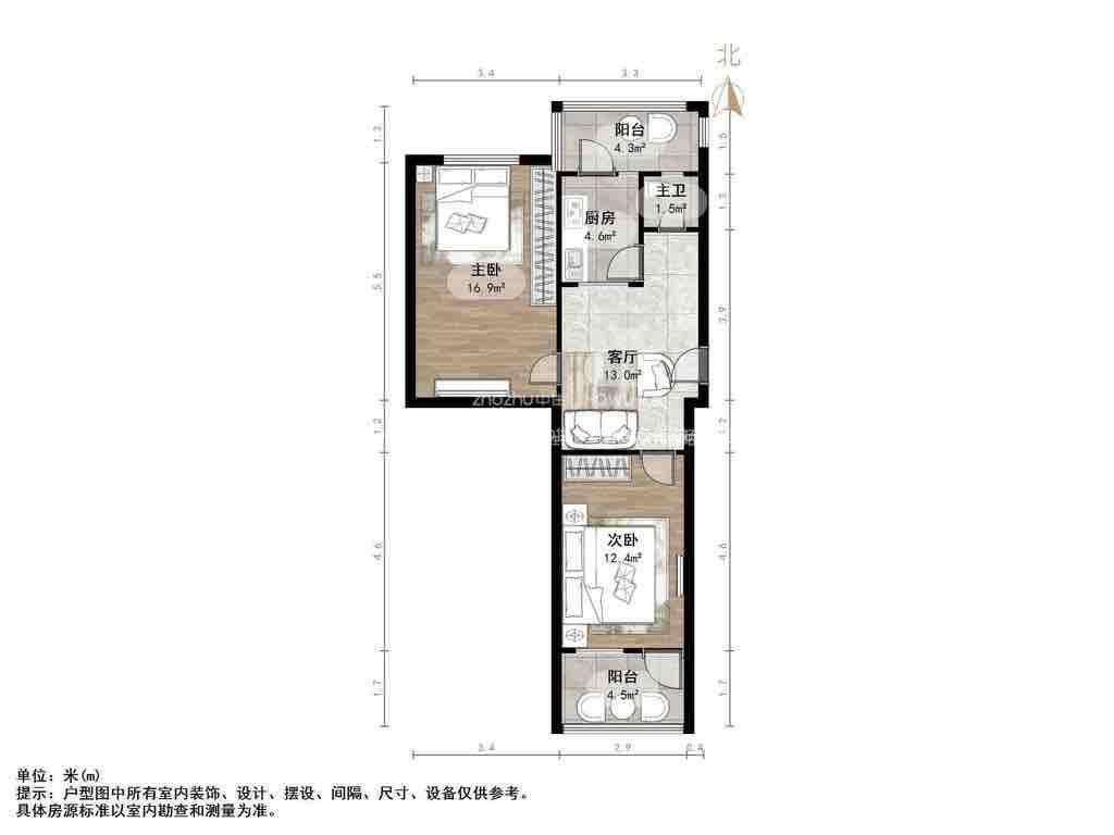 朝向南北 建筑面积68㎡