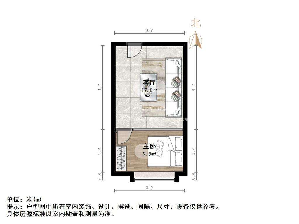 2、户型优势:1室1厅,南北卧室,客厅方正好用,单元对讲门,大院传达,安全性高!