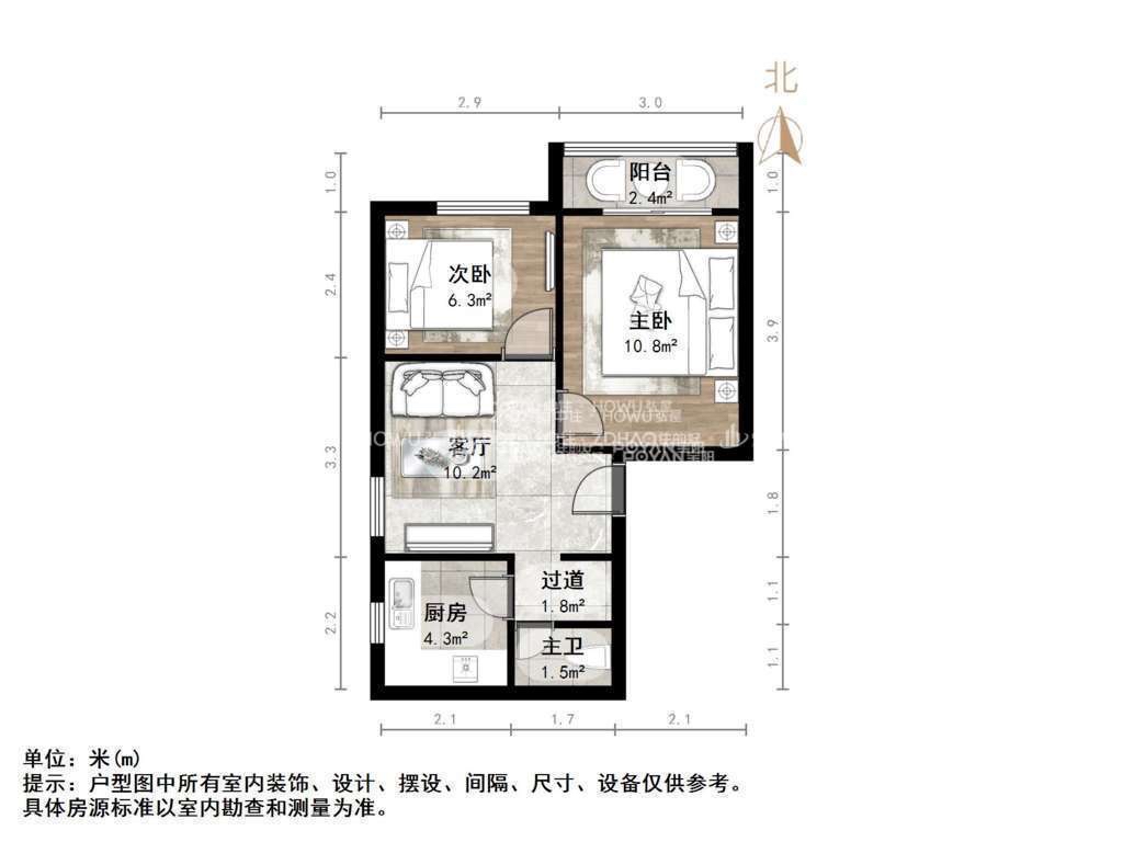 厅室2室1厅1卫1阳台