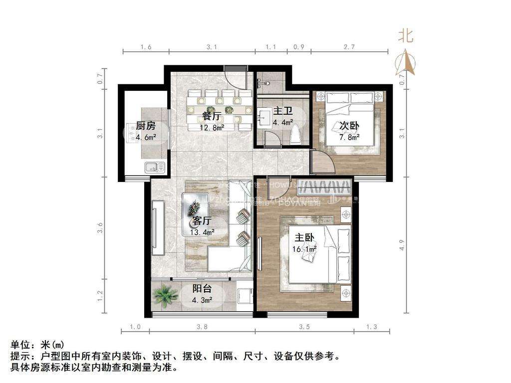 户型:3室2厅1厨1卫1阳台 ,朝向:南北,格局方正,南北通透,使用率超赞