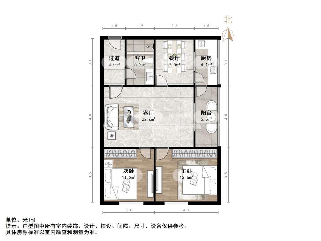 朝向南北 建筑面积92.04㎡