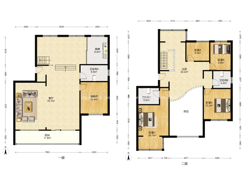 朝向南北 建筑面积278㎡