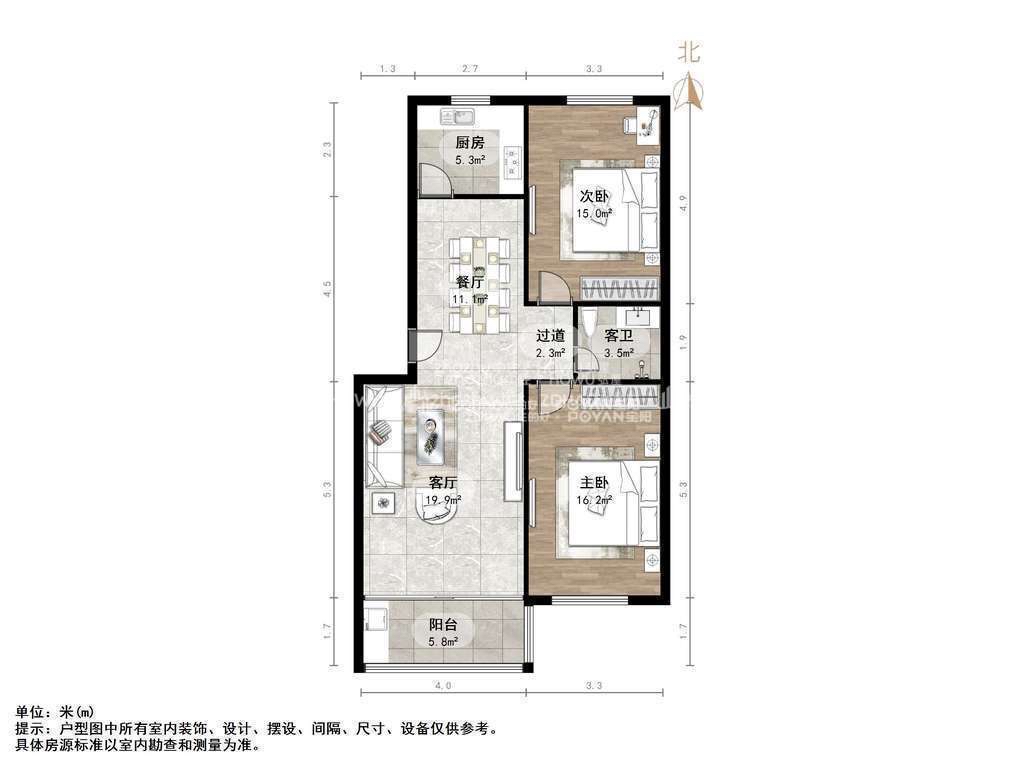 厅室2室1厅1卫1阳台