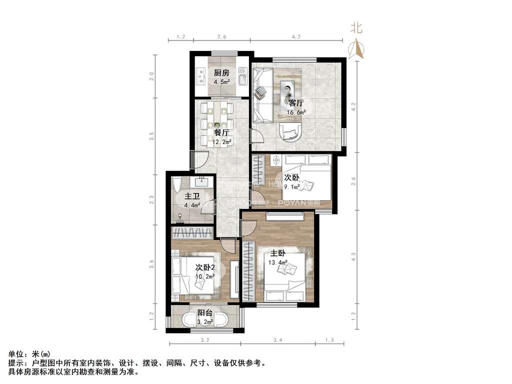 厅室3室2厅1卫1阳台