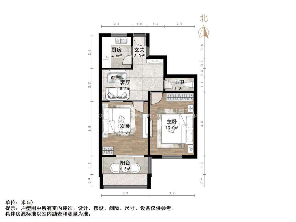 朝向南北 建筑面积58㎡