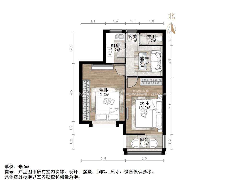 朝向南北 建筑面积60.03㎡