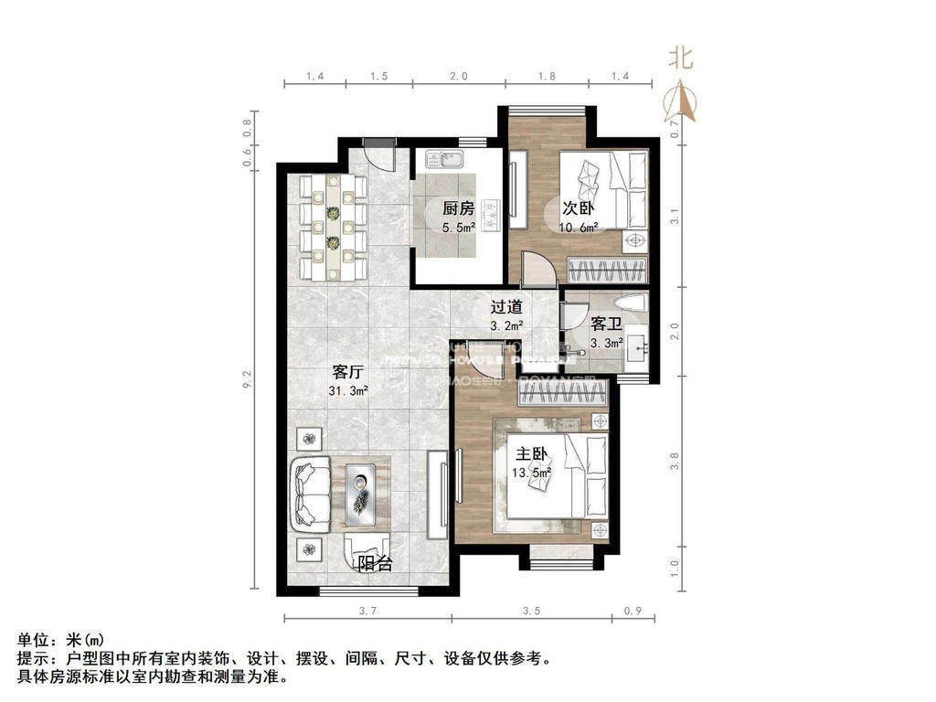 朝向南 建筑面积92.1㎡