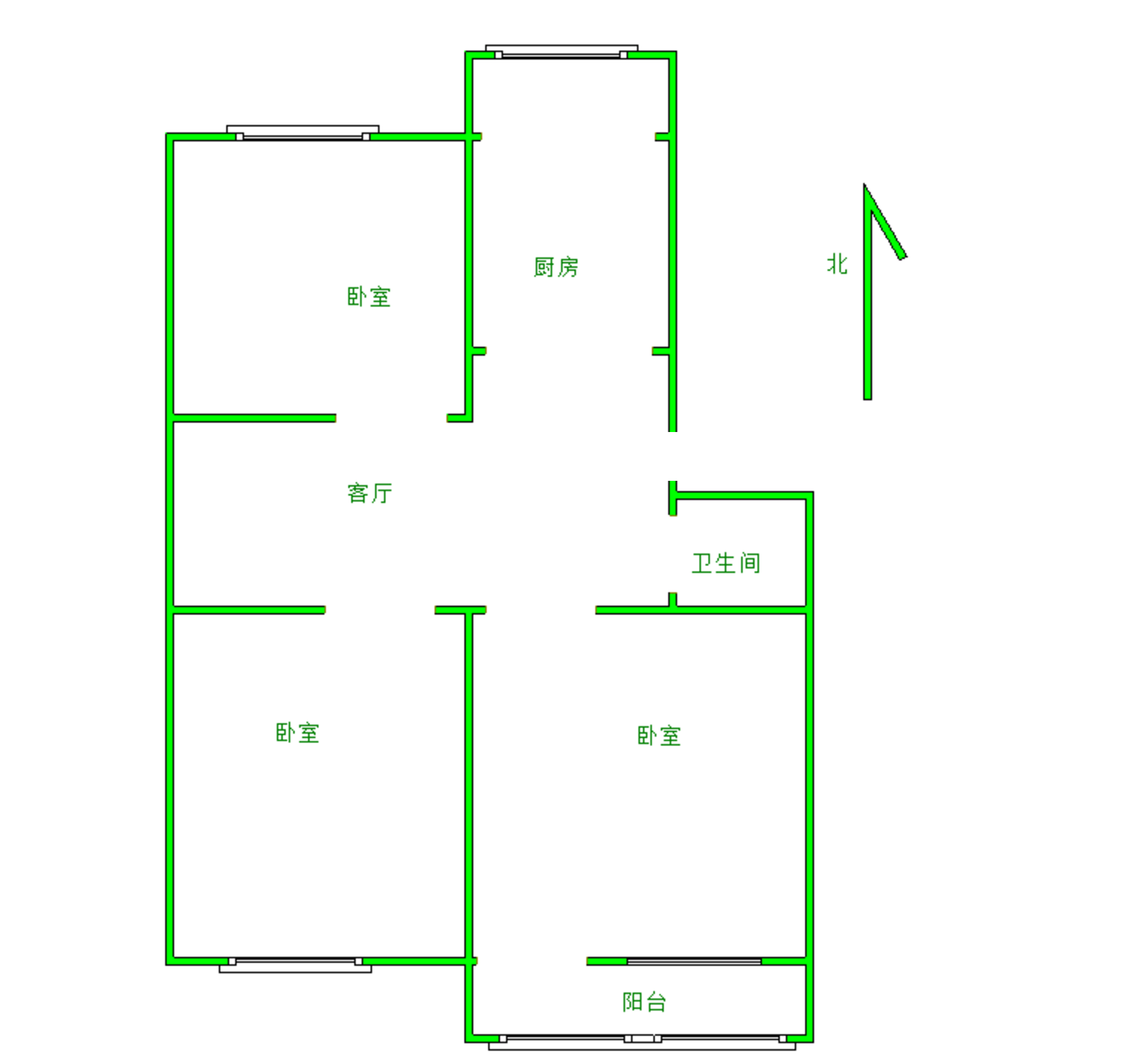 厅室3室1厅1卫1阳台